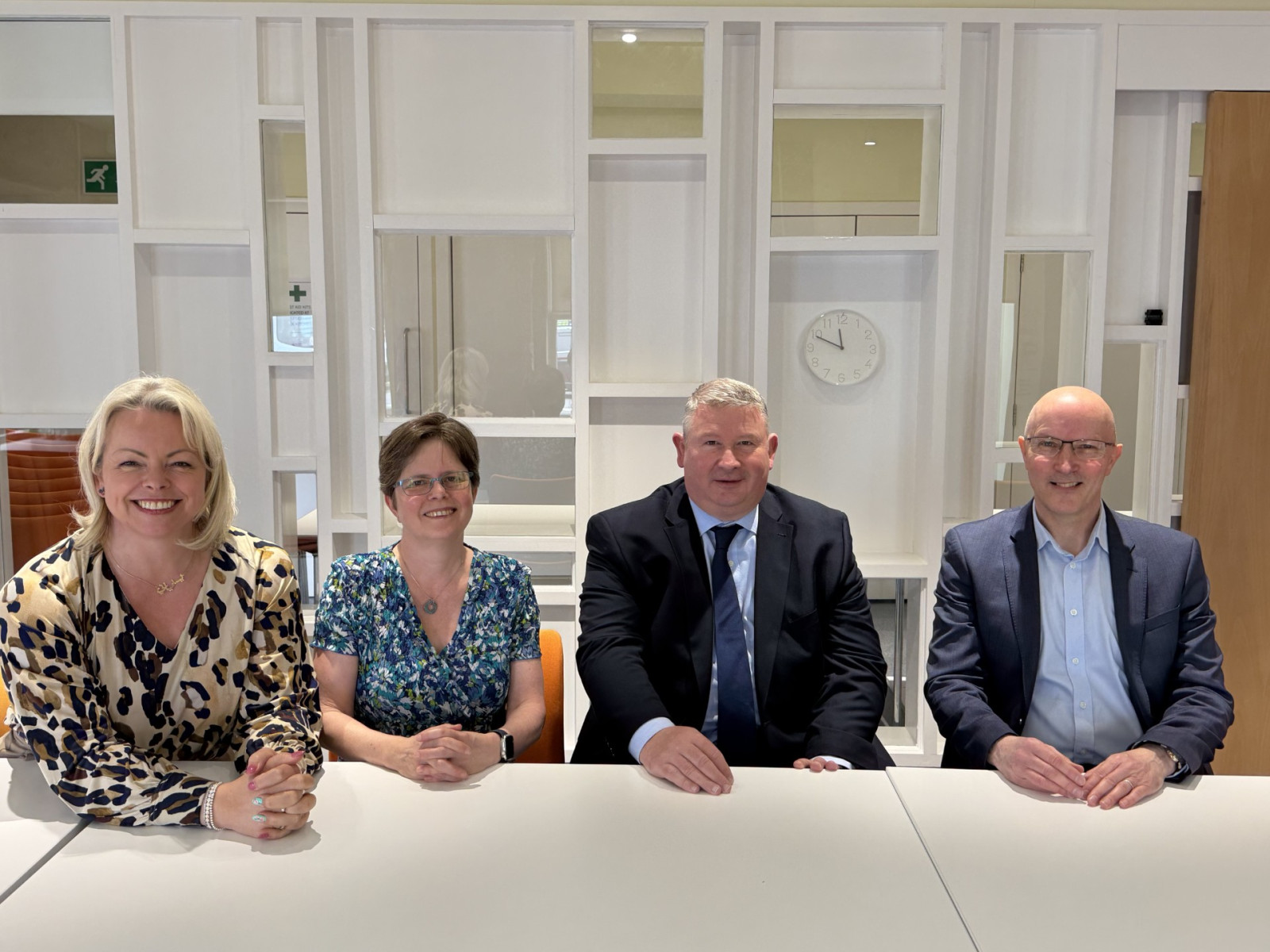 Picture shows (LtoR): Ayrshire Housing Chief Executive, Lesley-Anne Junner joins Atrium Homes’ Chief Executive Shannon Watson, Robert Stirling, Managing Director of Sureserve Energy Services Ltd and Shire housing Association Chief Executive Jim Munro at the signing of the new reactive repairs contract.